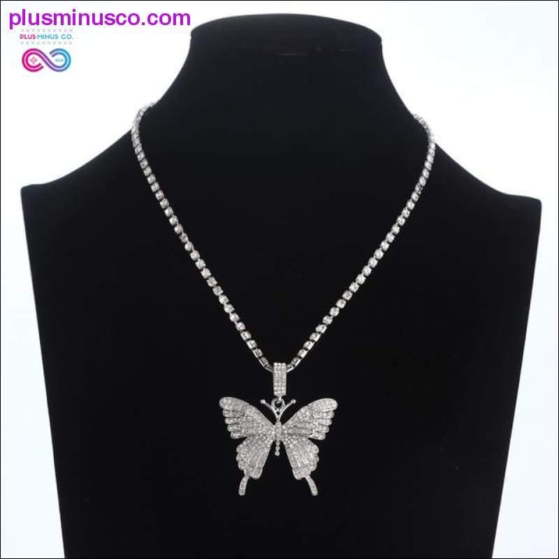 Iced Out butterfly necklace chain Bling Rhinestone pendant