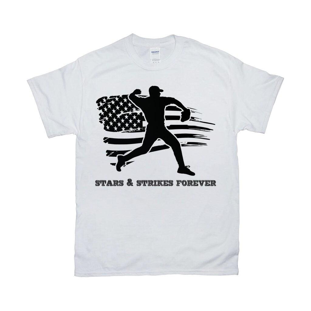 Stars & Strikes Forever | Baseball | American Flag T-Shirts, Baseball Shirts, Baseball Mom,Baseball Birthday Party, Baseball Gifts for Boys