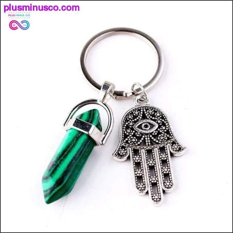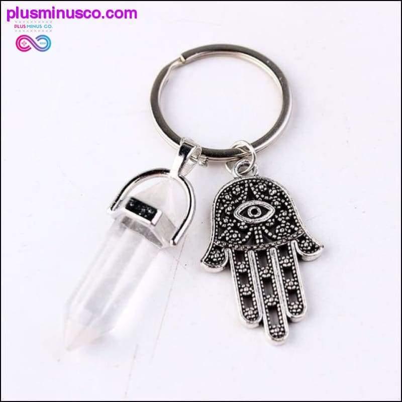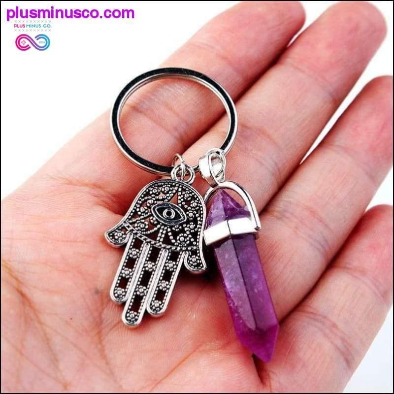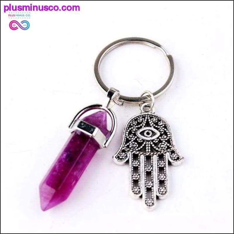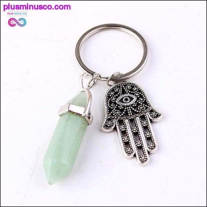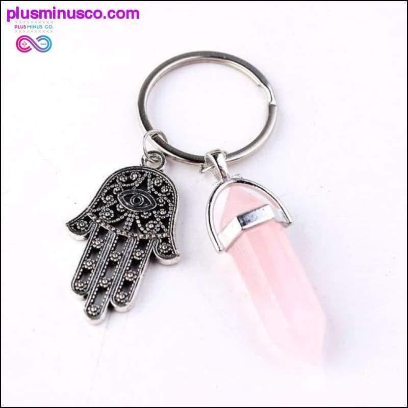 Our 1 PC Fashion Natural Stone Pendant Keychain Quartz Evil Eye Fatima Pink Crystal Key Chains Accessory Jewelry Gift