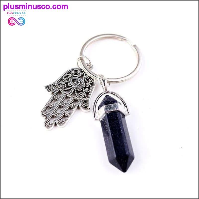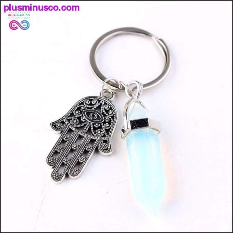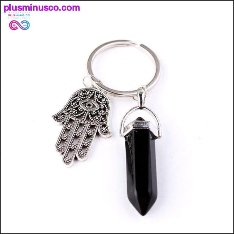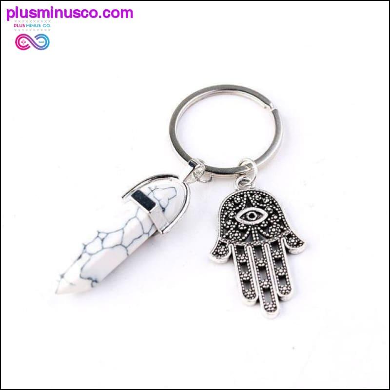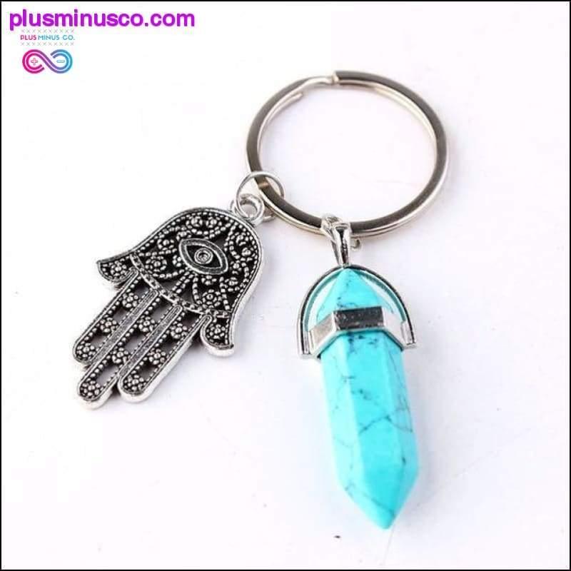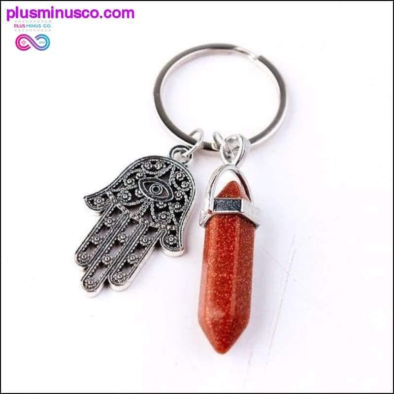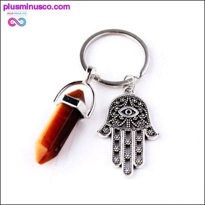 Our 1 PC Fashion Natural Stone Pendant Keychain Quartz Evil Eye Fatima Pink Crystal Key Chains Accessory Jewelry Gift