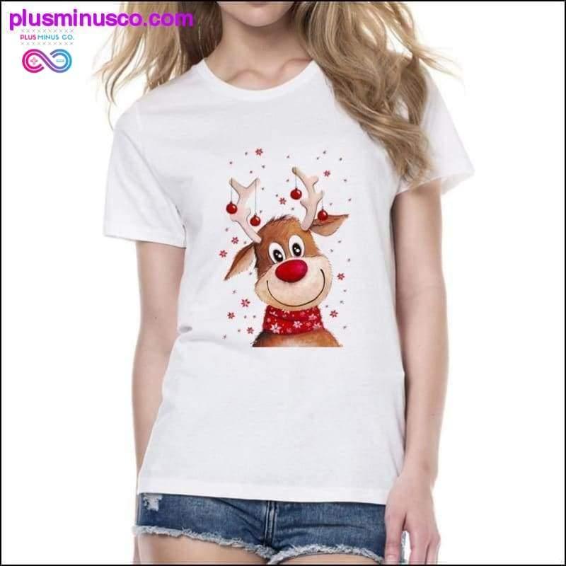 Christmas Deer Design T-Shirt for Women || PlusMinusco.com